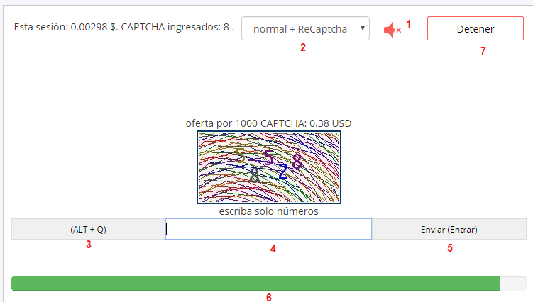 6.- La barra verde que se ve en la parte inferior es el tiempo que disponemos para resolver cada captcha.
